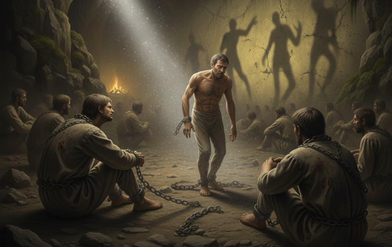 🕯️ Das Höhlengleichnis: Die Befreiung aus den Fesseln der Illusion und der Aufstieg zum Licht der Wahrheit (Wahrhaftigkeit).