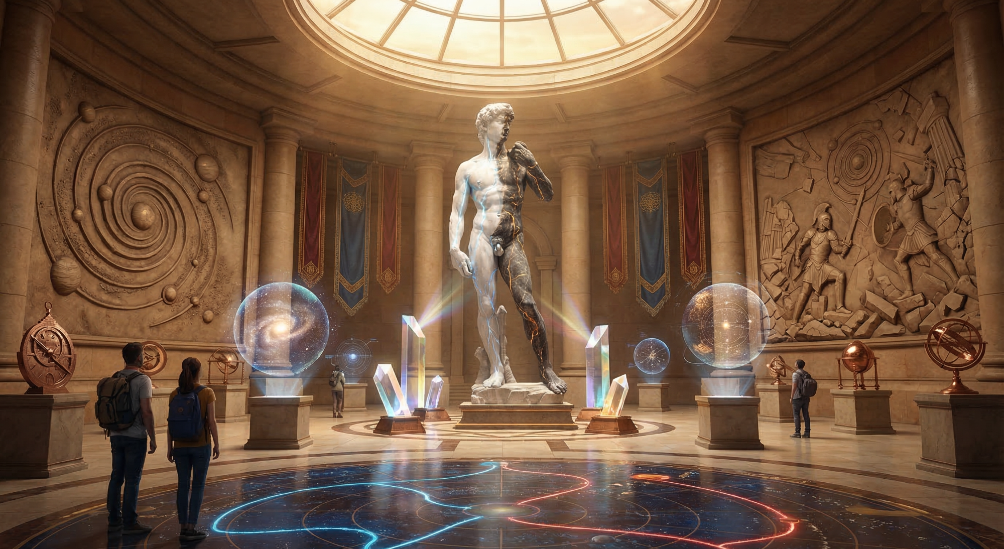 Wir nennen es „holographisch“, weil jeder Teil das Ganze enthält und jedes Fragment die Gesamtheit des Bewusstseins widerspiegelt, das es erzeugt hat. Nichts ist getrennt, nichts ist zufällig, nichts ist rein mechanisch. Die Wissenschaft beschreibt die Formen, die entstehen; der Mythos beschreibt die Bedeutungen, die sie beleben; das Leben ist die Bühne, auf der sich beide treffen. Das Heilige ist das Gewebe, das sie verbindet.