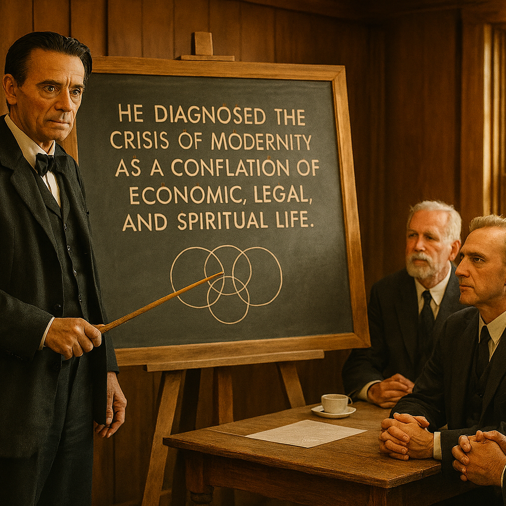 Nach dem Zusammenbruch der alten Ordnungen durch den Ersten Weltkrieg präsentierte Steiner mit der Sozialen Dreigliederung eine radikale Neugestaltung des sozialen Organismus. Er diagnostizierte die Krise der Moderne als eine Vermischung von Wirtschafts-, Rechts- und Geistesleben.